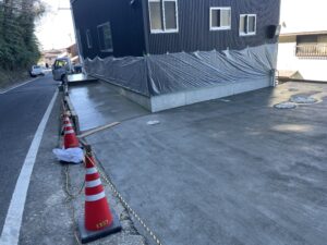 コンクリートを敷くと、より敷地が広く感じます